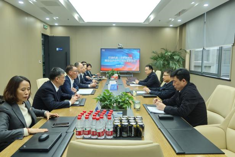 吴业华董事长对胡广杰书记的到访表示热烈的欢迎,就普陀区领导对上电科集团改革发展过程中的关心、支持和帮助表达了衷心的感谢。上电科集团党委书记王爱国详细介绍了上电科依托综合技术服务能力,赋能传统产业转型升级,在检验检测、标准引领、行业服务、智慧城市、智能制造等领域不断开拓创新,积极推动沿沪宁产业协同发展等工作成效。通过机器人国家检测与评定中心(总部)、上海机器人研发与转化功能型平台建设,打造机器人国家级检测认证平台与技术研发创新高地,取得了丰硕的成果。基于新一轮技术发展趋势,提出平台升级"一核两园"的机器人产业发展蓝图,推动上海以具身智能、人形机器人为引领的智能机器人创新发展路径,实现行业能级的整体跃升,推进区域机器人产业生态建设,为中国机器人产业高质量发展注入强劲动力。