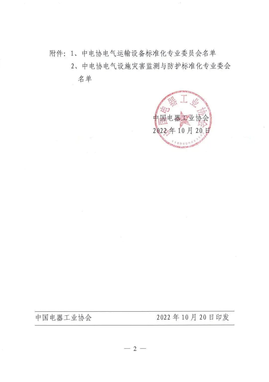 2022年10月20日,中电协[2022]162号文件下达了《关于设立中电协电气运输设备等2个标准化专业委员会的通知》,同意设立中电协电气运输设备标准化专业委员会(CEEIA/ TC67),秘书处挂靠单位为jiuyou.com九游(中国)机器人有限公司官网。